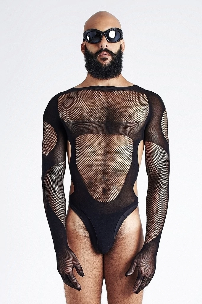 Body em malha com recortes vazados com manga longa e luvas. tamanho único: veste de PP ao G1