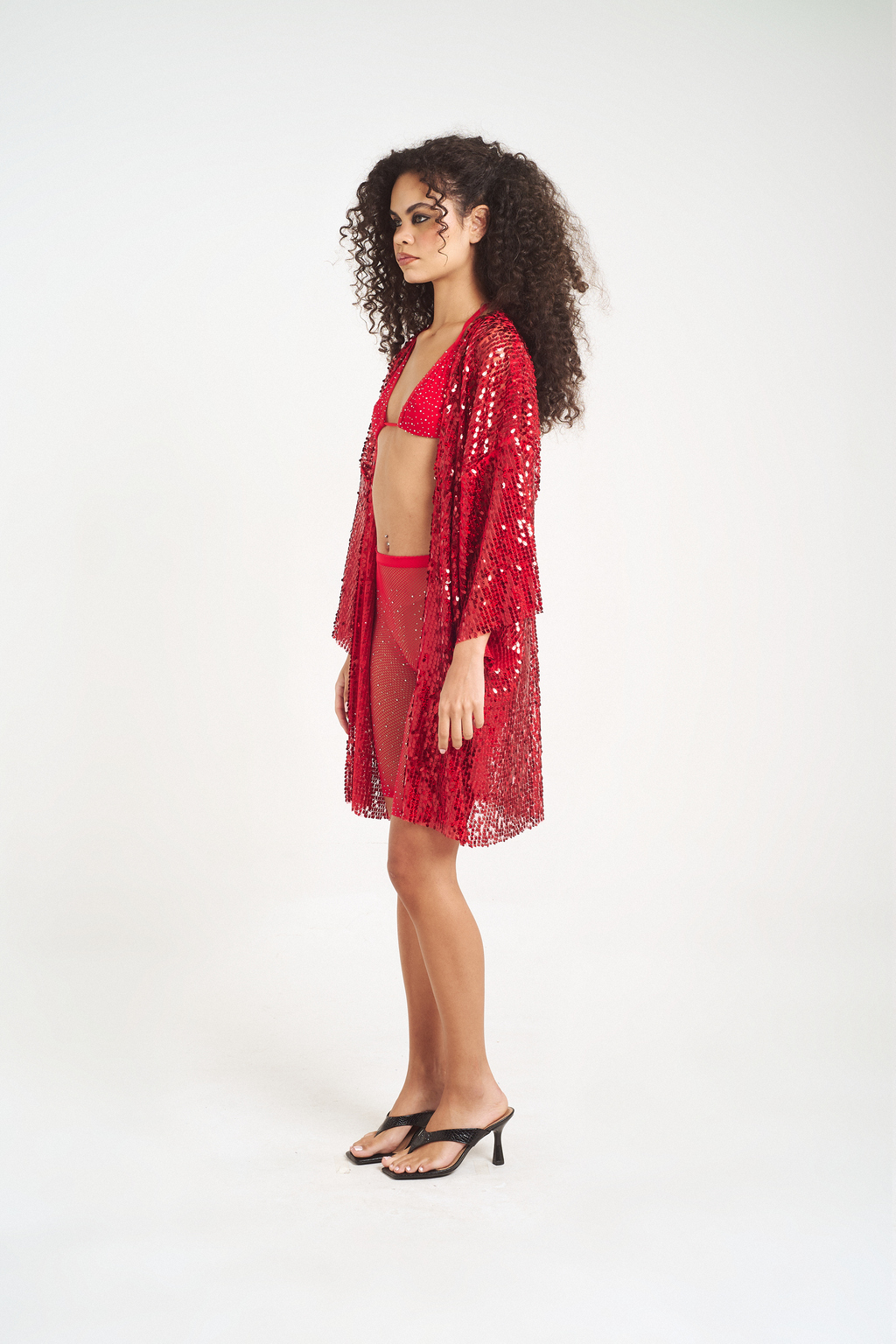 Kimono em tule rebordado com paetes holográficos